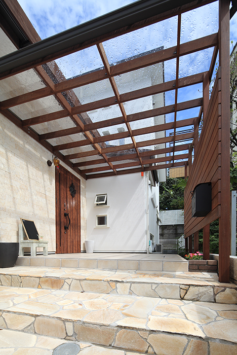 陽の光を遮ることなく、雨を避け、玄関先でお待ちいただいたりと便利に活用できるようになりました。